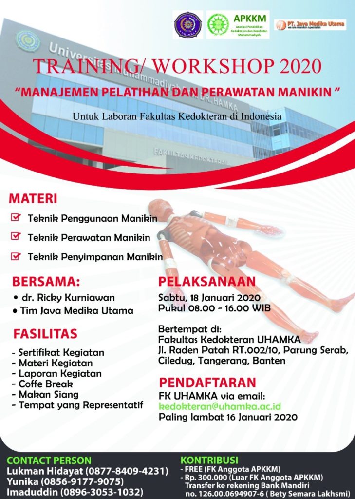 Pada tanggal 18 Januari 2020, di FK Uhamka telah diadakan training dan Workshop Manajemen Pelatihan dan Perawatan Manekin yang dikuti oleh dosen dan laboran dari…