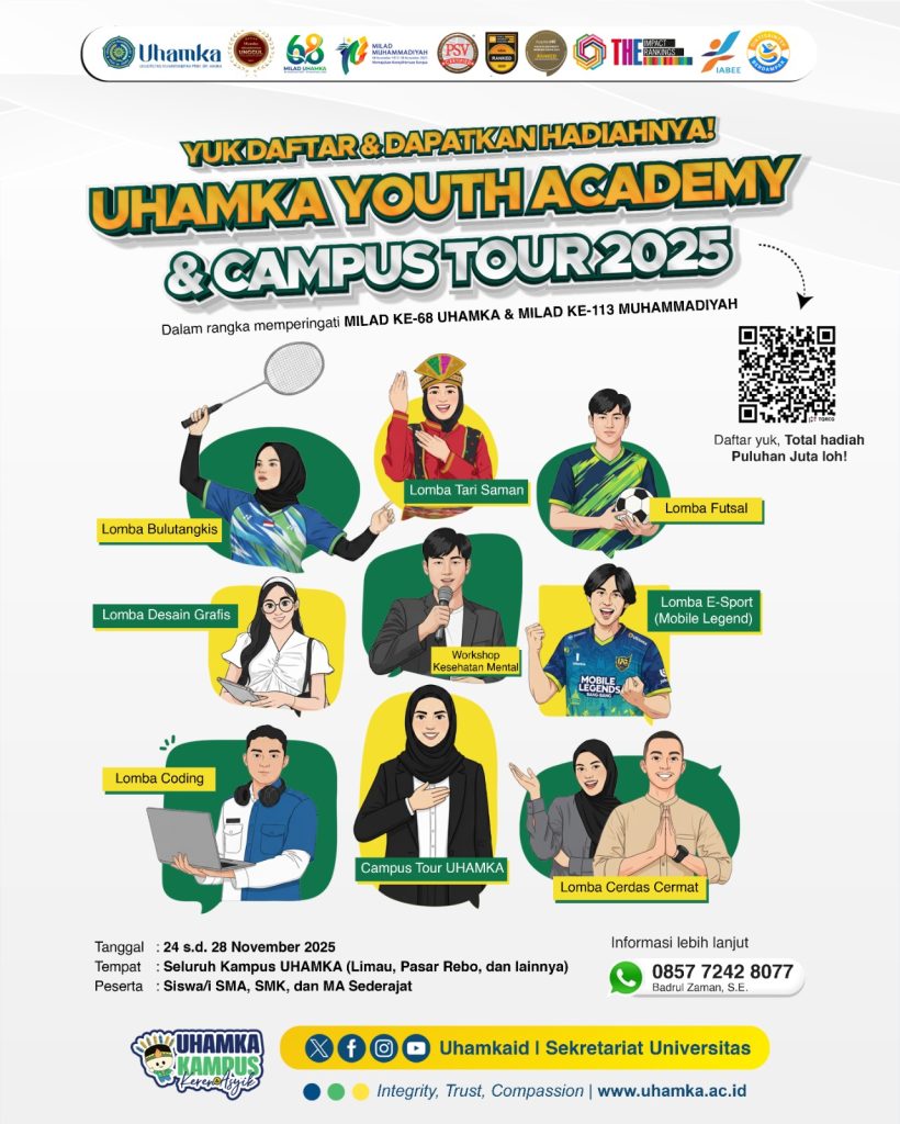 Jakarta — Universitas Muhammadiyah Prof. Dr. Hamka (UHAMKA) kembali menghadirkan kegiatan besar bertajuk “Uhamka Youth Academy & Campus Tour 2025”, sebuah rangkaian acara edukatif dan…