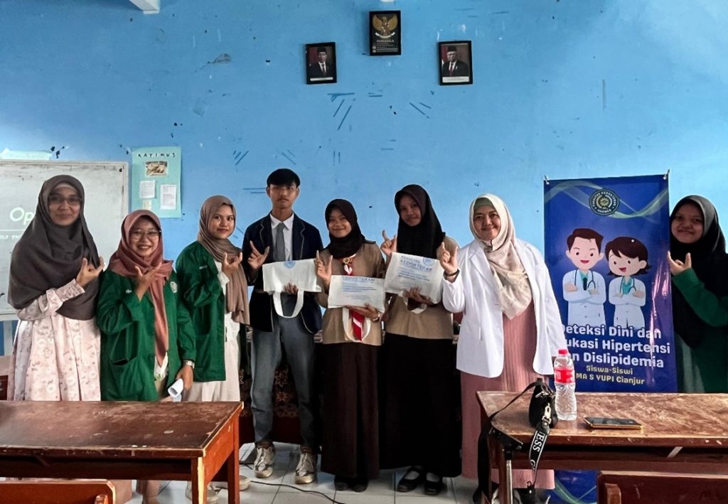 Kegiatan ini diselenggarakan di aula Madrasah Aliyah Yayasan UPI (MA S YUPI) Cianjur secara tatap muka dan diikuti oleh 106 peserta. Antusiasme peserta tercermin dari banyaknya pertanyaan dan diskusi yang terjadi, menunjukkan komitmen mereka untuk memahami dan menerapkan informasi terkait bahaya penyakit dislipidemia bagi diri mereka sendiri dan komunitas mereka.
