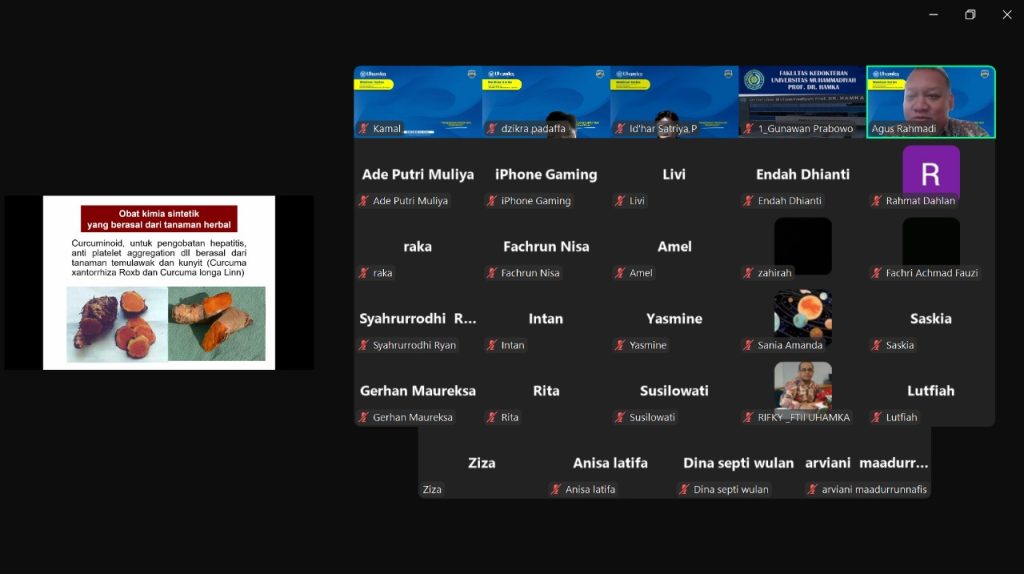 Tangerang, 5 Juli 2025 – Fakultas Kedokteran Universitas Muhammadiyah Prof. DR. Hamka (UHAMKA) kembali menyelenggarakan Webinar Series bertema “Pengobatan Herbal dan Kedokteran”. Acara yang digelar secara daring melalui platform Zoom dan diikuti oleh peserta yang terdiri dari dari remaja, mahasiswa, serta masyarakat umum.